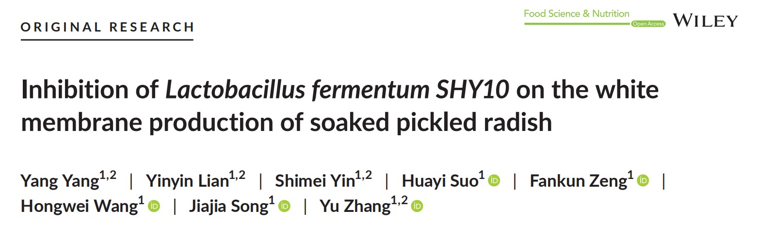 索化夷教授和张玉博士在泡菜品质控制领域取得重要进展