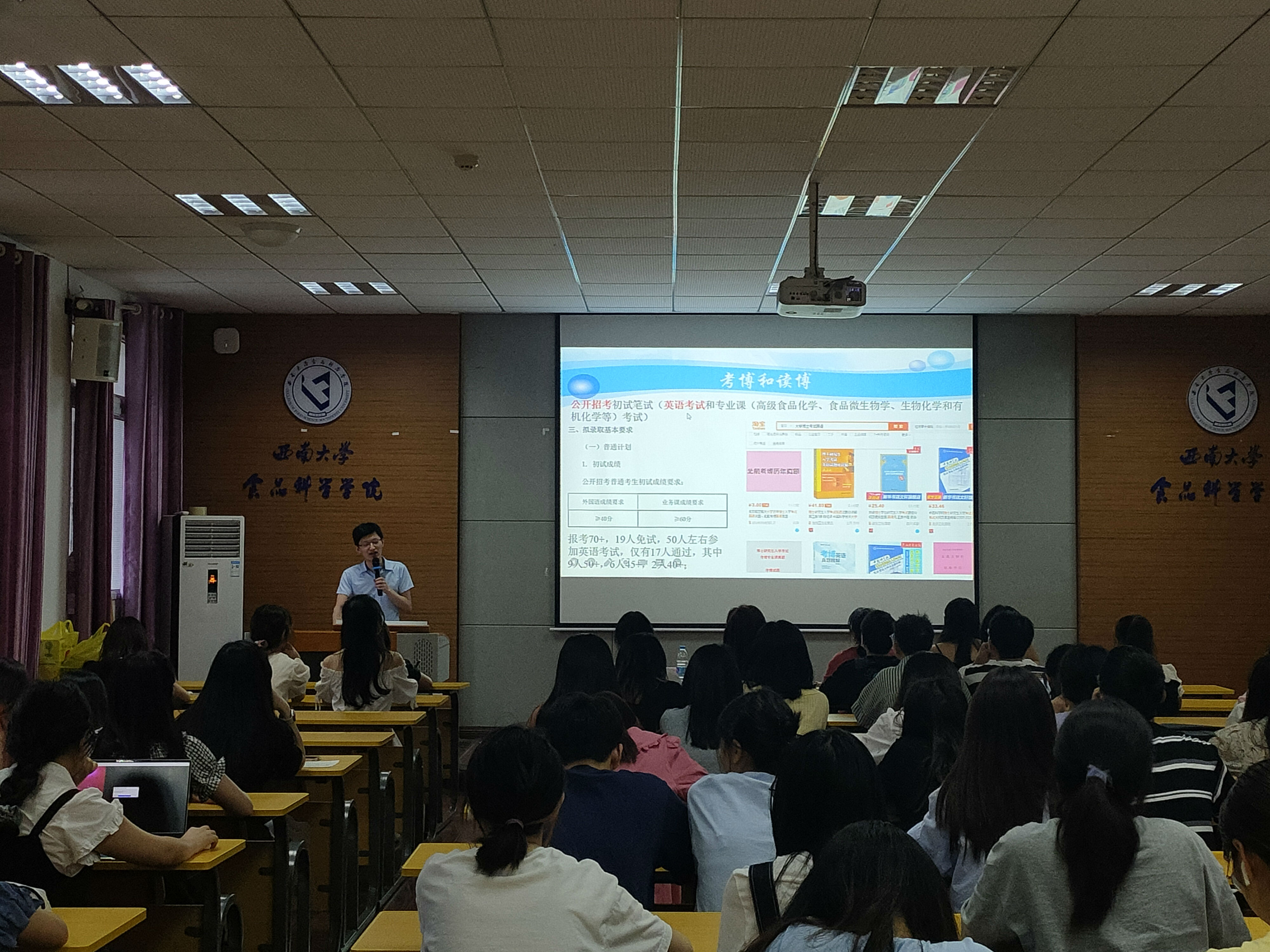 交流会上,2019级毕业生党员王智荣博士详细介绍了申请硕博连读条件、公开招考内容,并强调了选择学校、专业和导师时的注意事项。之后,2020级食品包装工程专业的何悦党员主要介绍了跨专业考博经验,向师弟师妹们讲解了跨专业考博的具体流程:寻找目标院校联系老师准备资料正式报名资料审核及面试。随后,2019级食品科学专业的赵萌党员分享了自己的考公心得,根据公务员考试的具体题型介绍了自己每个板块的学习方法,并推荐了相关网课老师及学习平台。接着,2019级食品加工与安全专业王朦朦同学以自身举例,向在场的研究生师弟师妹们分享面试技巧,介绍了简历投递、线上测评、签订三方三个阶段的成功秘诀。每位毕业生分享完毕后,观众席踊跃提问,经验分享人热情解答,互动性极强,场面热烈,同学们收获颇丰。