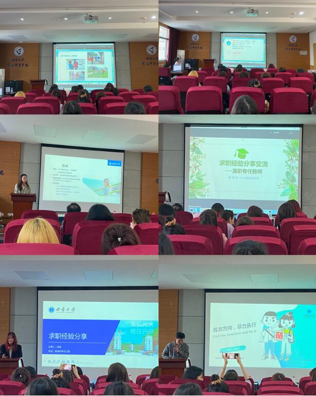 活动现场,胡家艺线上分享了目前所就职的街道办事处的日常工作内容,以及备考选调生过程中信息收集渠道和备考流程的经验,让同学们能够更加深入地了解公务员行业的各类信息。彭林从食品公司招聘人员的角度,凭借着拥有简历筛选和曾担任过面试官的经验,给予在场同学宝贵的面试建议和简历优化方案。杨青青则在线上从高职专任教师的角度,详细讲解了高校招聘信息的获取、考试准备以及日常工作内容等方面的知识,让同学们对于高校教职的求职流程有了更深入的了解。接下来,肖徐重点分享了自己的就业规划和近期的求职经验,并以亲身经历为引向同学们提出了实用的面试技巧和求职建议。最后,周真江则从申请博士方面进行了分享,为有意继续深造的同学们提供了专业的指导。