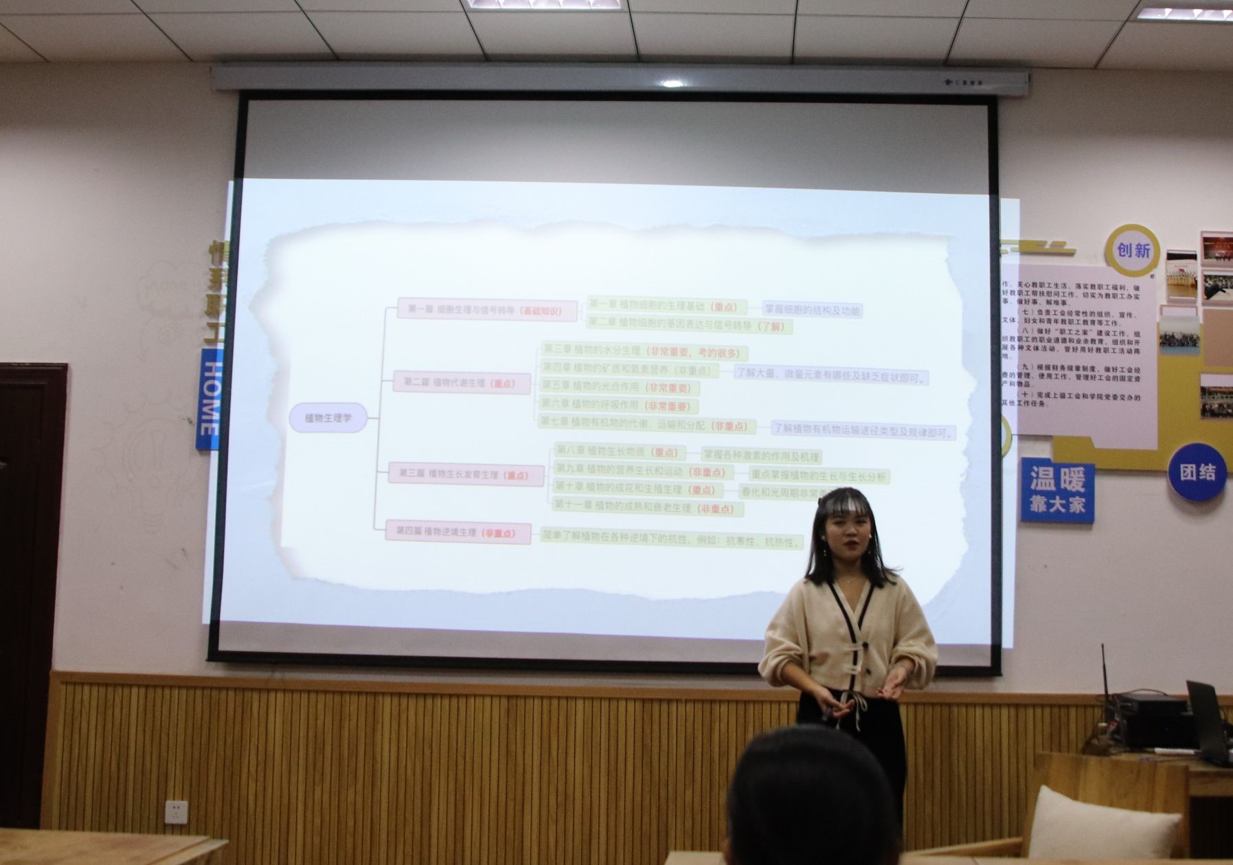 宫萌晗在本次活动中分享了植物生理学、茶叶生物化学的重要知识点及学习方法。她也建议同学们保持积极的心态、培养良好的学习兴趣。张欣圈画了两门课程的重难点,解答了同学们对于课程方面的疑惑,并强调了如何明确学习目标、制定合理计划,做到高效学习。