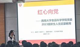 办学特色,以“民以食为天”为切入点,从食品的角度解读党的二十大,帮助新生们快速了解党的基础知识,提高思想觉悟,学习党的先进理论知识。