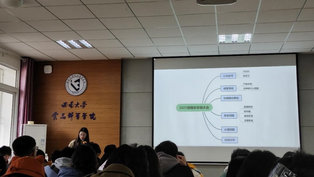 会议内容密切贴近同学们现阶段的学习生活实际,分别从认真备考、诚信考试、安全问题、心理健康、假期安排等方面展开说明。