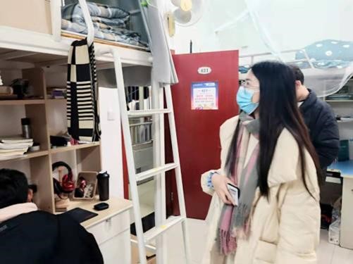 “流动红旗”寝室评选工作由辅导员夏雪指导,年级长、楼栋委员、生活委员以及寝室长组成查寝小组,严格按照《黄漫