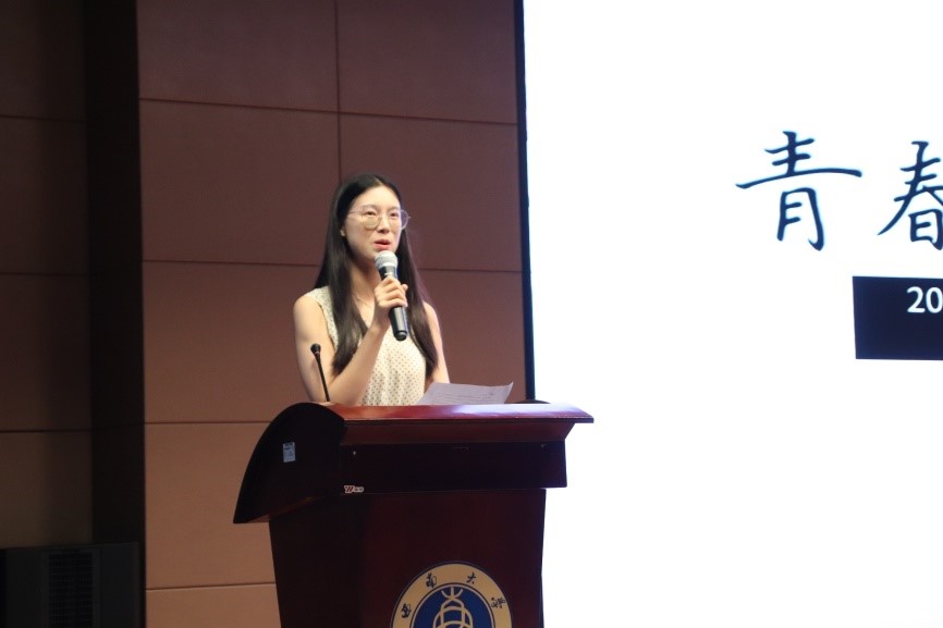 团委学生会是一个优秀的集体,希望同学们能够踊跃报名,勇于在活动中展现自己的风采。”随后,第十七届团委及学生会团委副书记周宏上台寄语新生。周宏谈到,大学是一个提升自己,完善自我的平台,希望各位同学抓紧机会,不要松懈,努力学习,在四年时光里成就最好的自己。