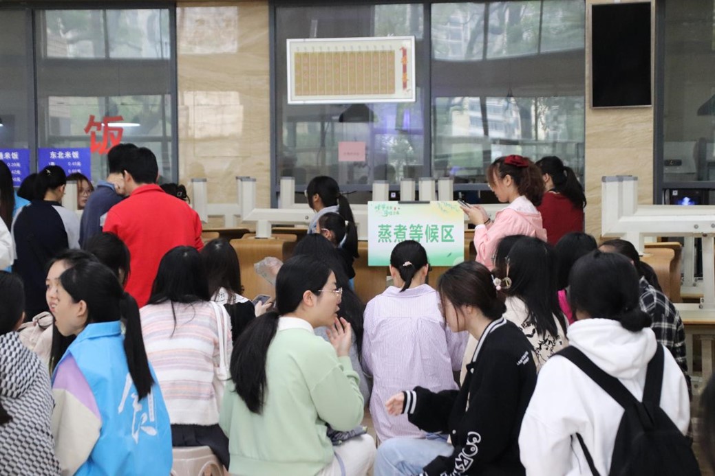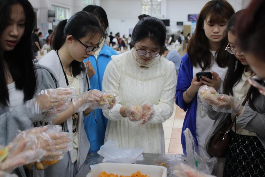 联合党委宣传部、党委网络工作室、后勤集团、校工会、校团委于楠园二食堂举办了“时节有食,清明尝春”青团DIY活动。活动吸引了黄漫