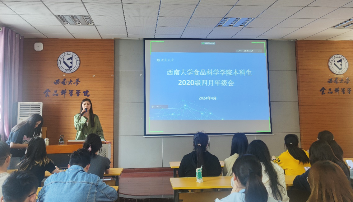 2024届本科毕业生年级会在40教312召开,会议由2020级辅导员杨希主持。2024届本科毕业生通过线上线下相结合的方式参加了会议。