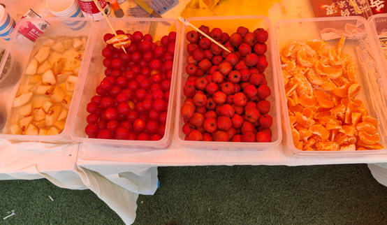 活动的主要部分“记忆中的糖葫芦”通过寓教于乐的方式,让同学们在制作传统小吃——糖葫芦的过程中深入了解了中国传统饮食文化。参与者首先进行关于中国传统文化的知识问答,回答正确的同学可前往DIY区,自由搭配水果,亲自制作自己独一无二的冰糖葫芦。这一环节不仅锻炼了同学们的动手能力,也让他们体会到了传统饮食文化的魅力。