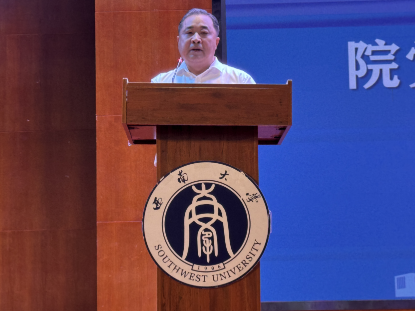 的悠久历史及深厚文化底蕴进行了概述。他向新生们提出了明确的发展目标,并期望他们能够有序地实现这些目标,以促进个人价值的实现。张院长表示:“雄关漫道真如铁,而今迈步从头越,希望新生重新开始,严格自律,在大学生涯中开创属于自己的辉煌篇章”。