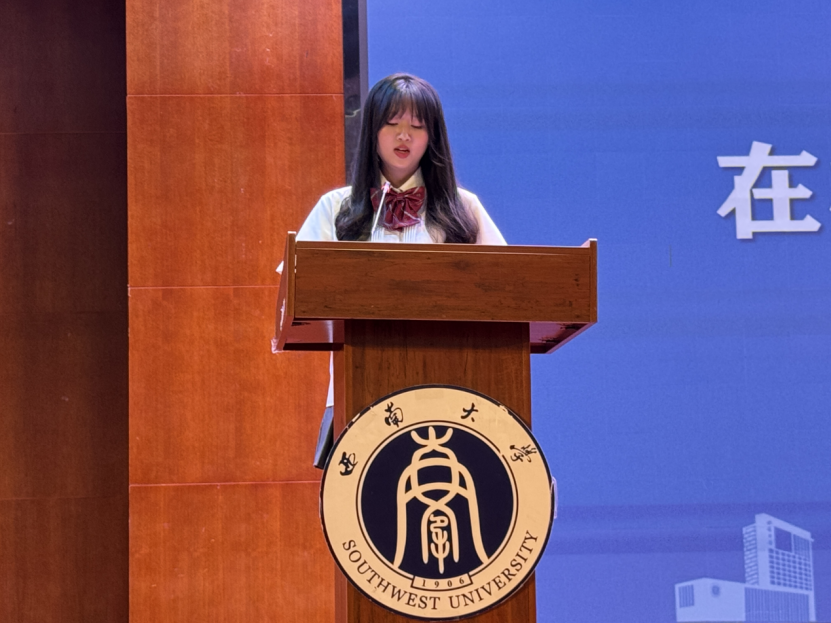 在校学生代表曾钦同学分享了其个人经历,强调了自主性与努力的重要性,并就大学生活、学术学习以及学生工作等方面向新生们提出了建议,同时表达了对他们的美好祝愿。研究生新生代表王欢和本科生新生代表王静怡也分别表达了对新身份的看法,并鼓励大家积极适应变化,拥抱新生活。