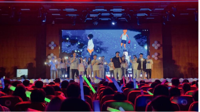 活动接近尾声时,全体团委学生会成员共同合唱歌曲,同时积极与现场新生互动,歌声与欢呼声交织,将现场气氛推向高潮。最终,本次新生联欢晚会暨招新大会在歌声中圆满落下帷幕。