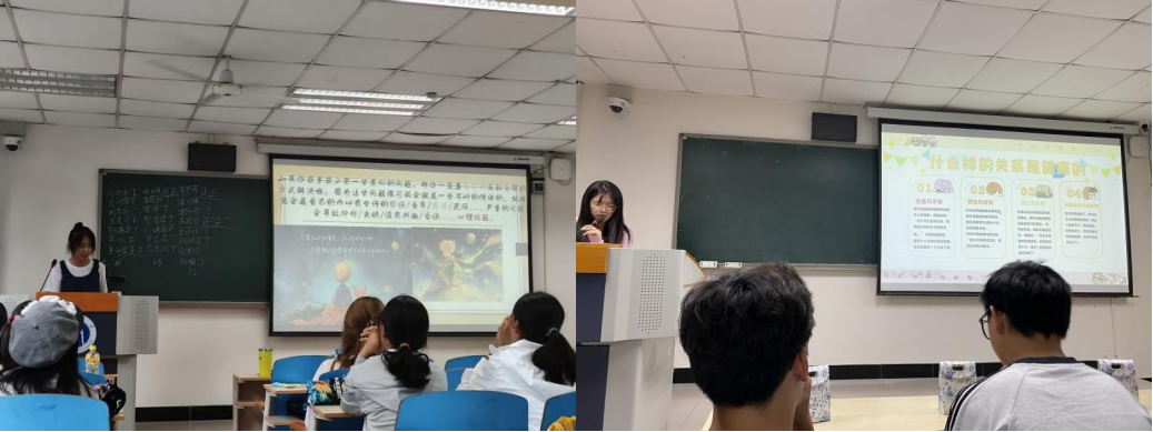 活动由心理健康教育拉开帷幕。其中,4班围绕知识科普及心理关怀两方面引导同学们关注常见心理适应问题。8班依次从人际交往、自我意识、情绪管理、亲密关系四个方面展开心理健康知识讲解。本次教育内容丰富,形式新颖,全方位系统性地为刚步入大学的同学们提供了心理调适方法,为新的大学生活奠定了坚实心理基础。