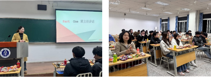 2024级食品质量与安全1班、2班在38教203教室联合举办班级团建活动,班主任李富华出席,全体同学参加。