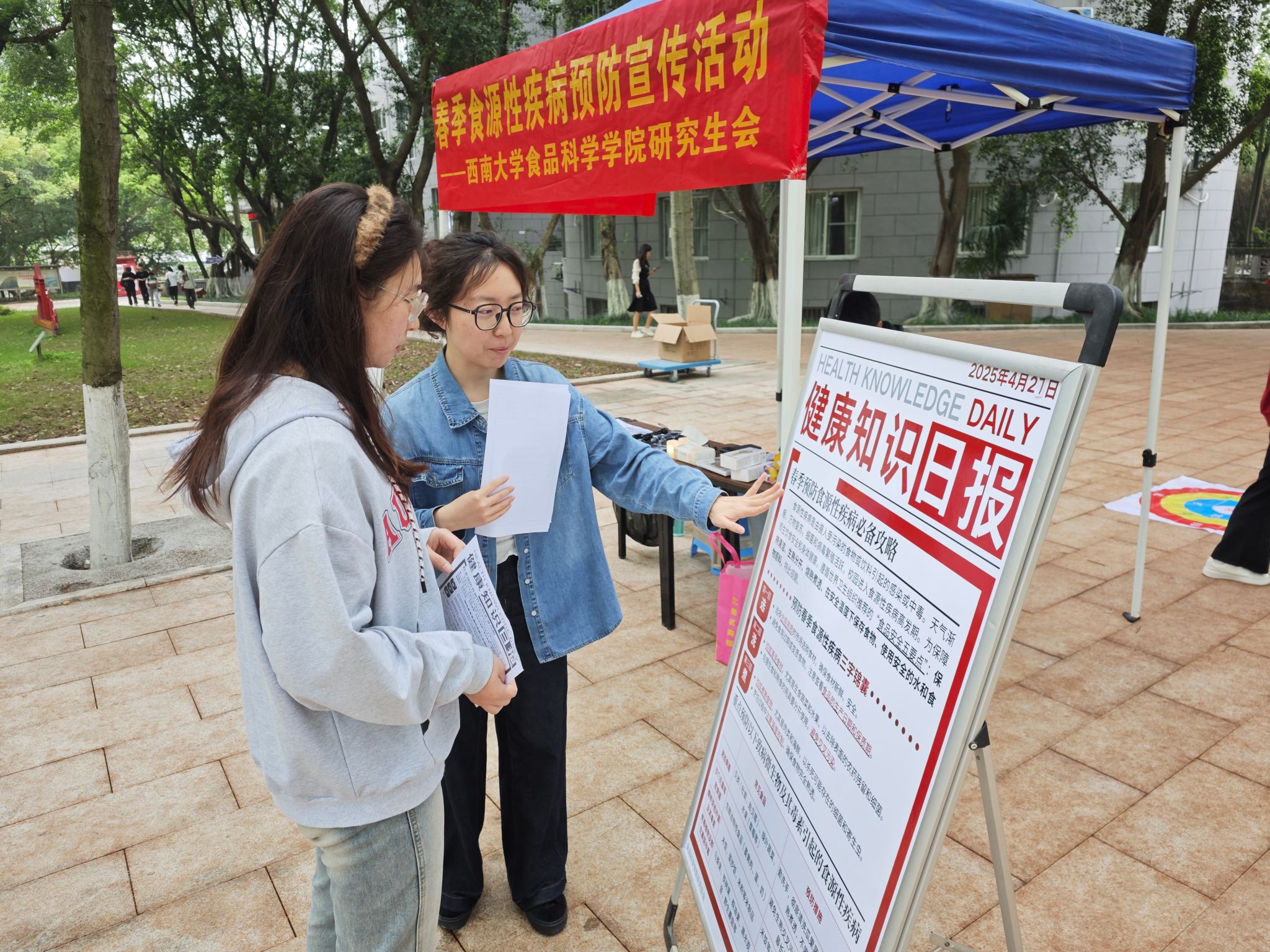 “预防为先,健康为本”,为弘扬健康饮食理念,增强西大学子对食源性疾病的重视度,进一步提升全校师生对食品安全的认知和防范意识。2025年4月27日,黄漫