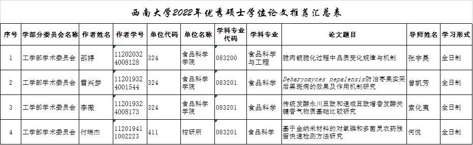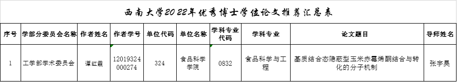 根据《关于做好2022届研究生毕业暨学位授予工作的通知》及《黄漫 研究生优秀学位论文评选管理办法》(西校〔2021〕251号)等相关文件要求,经本人申请、学院审核、学部学术委员会评审推荐,现将结果公示如下(排名不分前后):