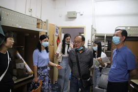 ,同时,新生们也热烈而真挚地欢迎老师们的到来。每到一个宿舍,吴书记张院长都会幽默风趣并饱含关心地与新生们亲切交谈,询问大家来自哪里,入学报到是否顺利,对新环境是否熟悉等情况,并叮嘱他们注意身体健康。期间,刘书记细心观察每个宿舍的住宿情况,表示学院会尽最大努力为新生创建良好的生活和学习条件。刘书记和夏院长则多次强调疫情还未完全结束,一定要遵守校规校纪,戴口罩,勤洗手,注意自身防护。曾院长则从专业角度要求学生们学会“吃苦”,享受“吃苦”。同时,辅导员杨希老师表示若有任何不清楚的地方都可以积极询问,并希望新生们能够及时完成角色转变,适应大学生活。老师们用亲切温暖的话语表达了对新生们的期盼,希望他们拥有别开生面的大学学习生涯和不虚此行的天生之约。