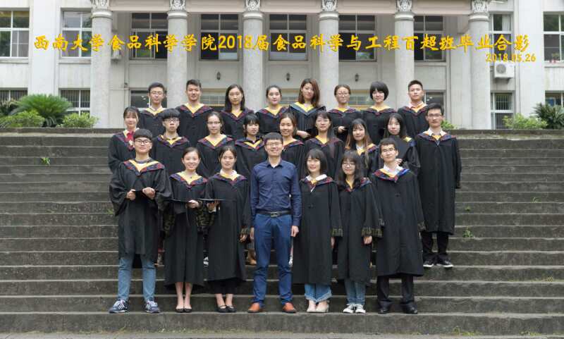本科生科技创新项目,所有创新项目均顺利结题。在创新创业方面:1名同学所在的团队凭借其作品“葛生情”在“创青春”中航工业全国大学生创业大赛公益创业赛中荣获全国铜奖、重庆市金奖;1名同学负责的团队凭借其作品“五彩萌妞果蔬纸”在“萌番姬杯”第三届国际大学生创新创业大赛决赛中荣获第二名;在2016年天博食品创意大赛中,1名同学所在团队的作品“汤的N次方”获得二等奖,1名同学所在团队的作品“香辣鱼贝海鲜酱”获得优秀奖。在学术论文发表方面:14级百超班共有11名同学在国内核心期刊发表学术论文,总计22篇,以第一作者身份发表的论文共17篇,以第二作者身份发表的论文共5篇,其中有4篇论文被EI收录,13篇论文被A类杂志收录,4篇论文被B类杂志收录。在继续学习深造方面:全班有8名同学成功获得推荐免试攻读硕士研究生资格,占专业保研名额的80%。据统计,14 级百超班的23名同学中除4名同学选择就业,其余19名同学分别前往加州大学洛杉矶分校(1人)、中国农业大学(6人)、华南理工大学(2人)、四川大学(2人)、中国海洋大学(3人)、黄漫