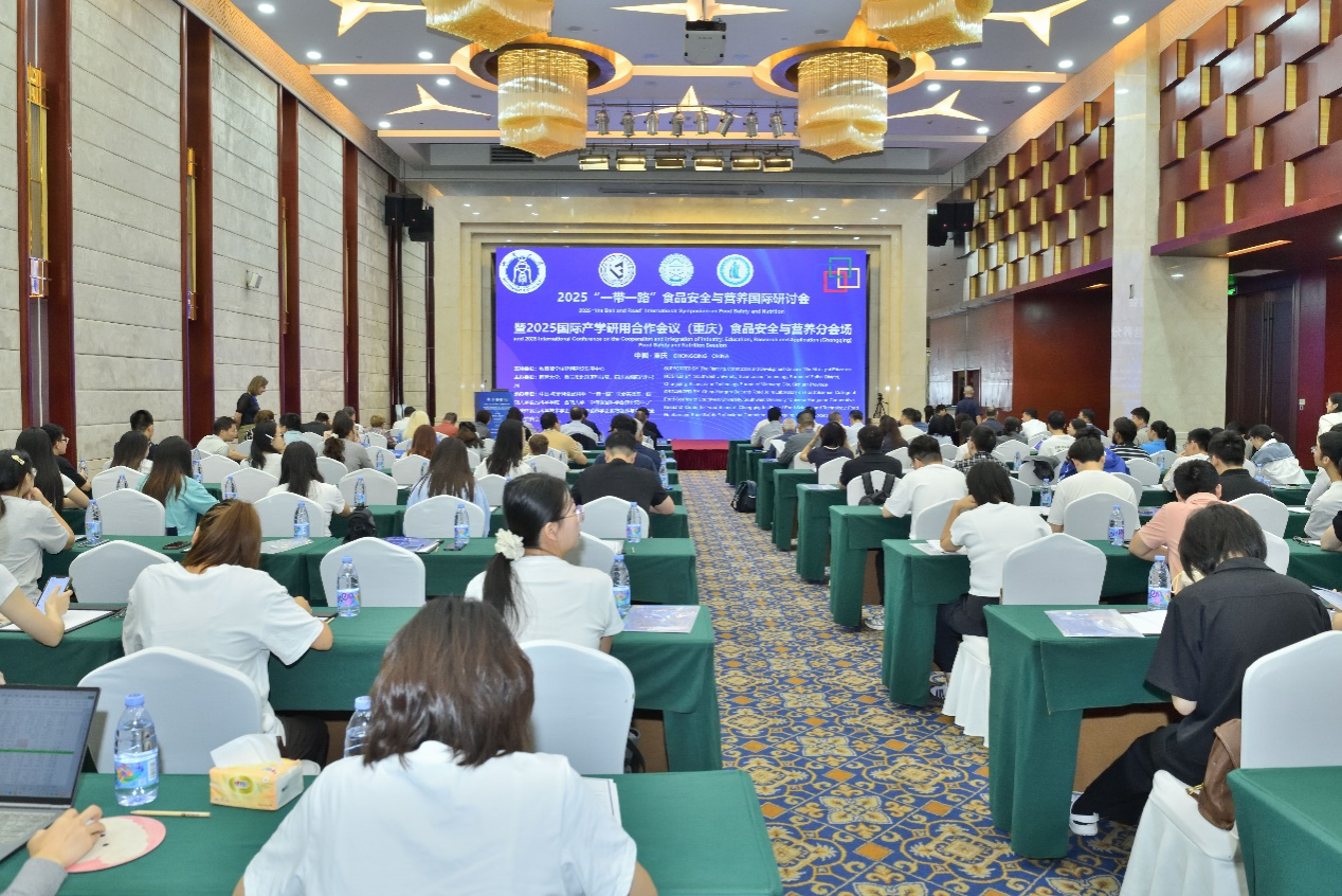 、重庆市北碚区科技局、四川省绵阳市科技局和重庆市食品科学技术学会联合主办的2025“一带一路”食品安全与营养国际研讨会暨2025国际产学研用合作会议(重庆)食品安全与营养分会场在海宇温泉大酒店召开。重庆市科学技术局党委副书记许志鹏、重庆市北碚区人民政府副区长吕俊、匈牙利驻重庆总领事馆副总领事高道马、中国驻匈牙利大使馆代表刘华、学校副校长范大明等出席来自中国、匈牙利、俄罗斯、埃及、巴西、西班牙、瑞士的食品科学及相关领域专家200余人参加的线下线上会议。