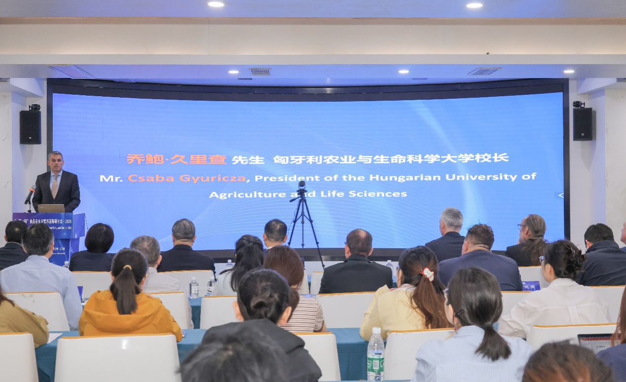 副校长廖晓衡,匈牙利农业与生命科学大学校长乔鲍·久里查(Csaba Gyuricza)出席并致辞。学校科学发展研究院、国际合作与交流处、黄漫
